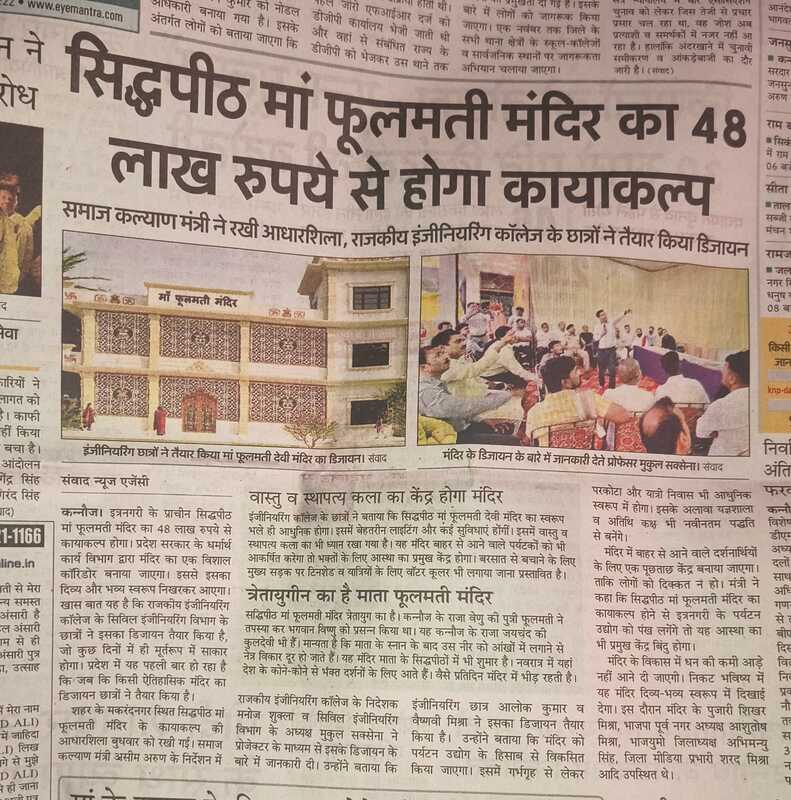 सिद्धपीठ मां फूलमती मंदिर का 48 लाख रुपये से होगा कायाकल्प